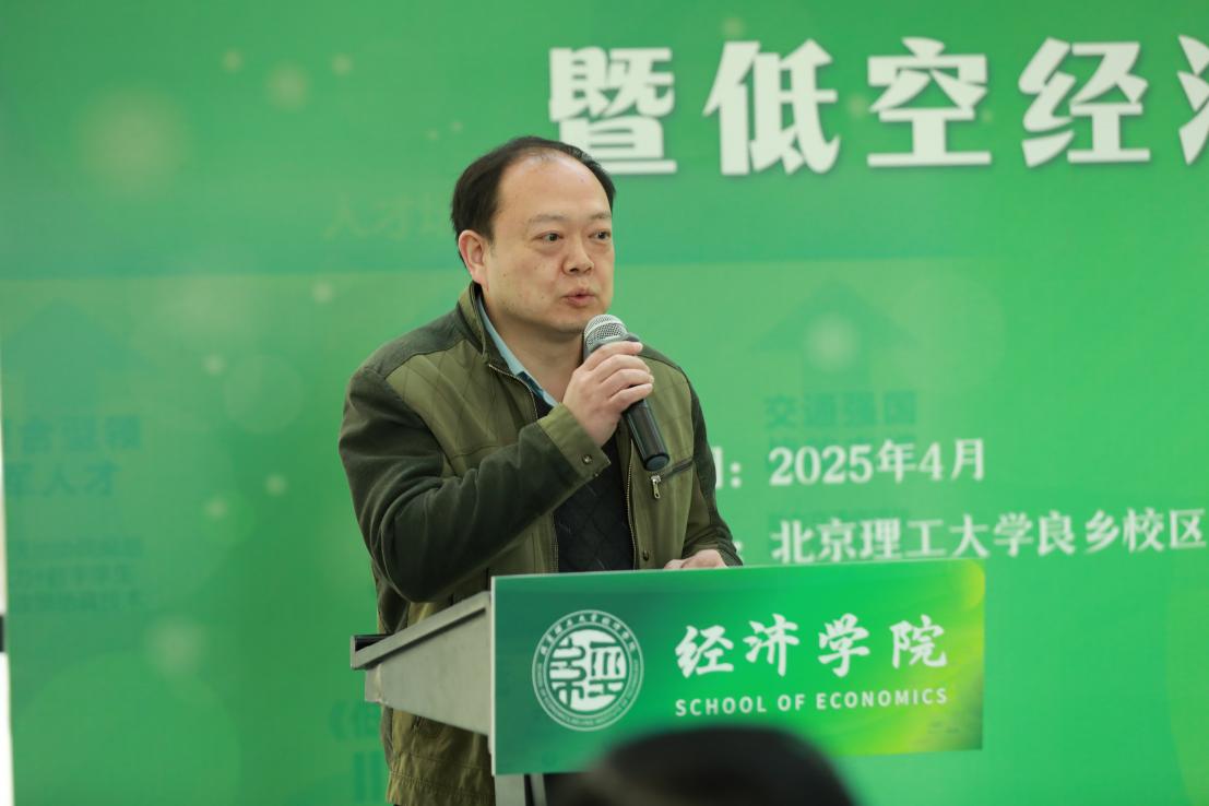 展览由北京理工大学经济学院院长王兆华做开幕致辞。王兆华院长首先向与会嘉宾表达了诚挚谢意,作为去年新成立但承载厚重历史的经济学院,学院的发展离不开兄弟院校、行业伙伴、学校各职能单位与社会各界的鼎力支持。王院长介绍,北理工经济学院的根基可追溯至1953年创建的政治经济学教研室,如今学院已构建起涵盖3个本科专业、2个学术型硕士学位点、2个博士学位点的全贯通人才培养学位体系,并且今年新增了金融专硕与数字经济专硕项目,并正在申报低空经济专业硕士学位点。此次展览聚焦的金融科技(低空经济方向)专业,是全国首批低空经济方向本科专业,也是北京理工大学与中央财经大学校际深度协同建设的特色项目,通过融合北理工的硬核理工技术与中央财经大学金融科技学科优势,开创了“金融科技+低空经济”的复合型人才培养新范式。