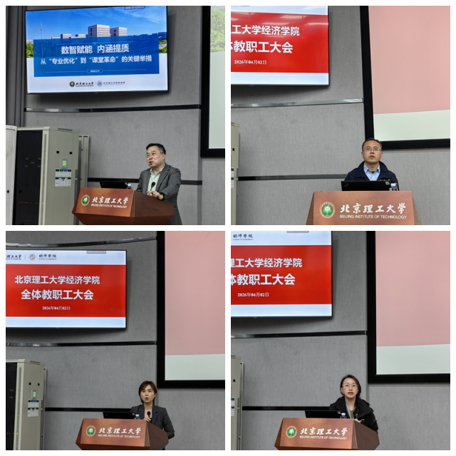 4月2日下午,经济学院2026年第一次全体教职工大会暨警示教育大会在中关村校区顺利召开。学院班子成员、全体教职员工共计60余人参会,会议由副书记、副院长彭明雪主持。